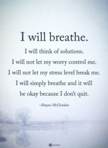 I will not let my stress level break me. Overwhelming anxiety brings about actual pain in my neck and joints. I don’t sleep well. My breathing is shallow, and my heart rate stays high. Self-care is critical, and I can not neglect my own mental and physical health.